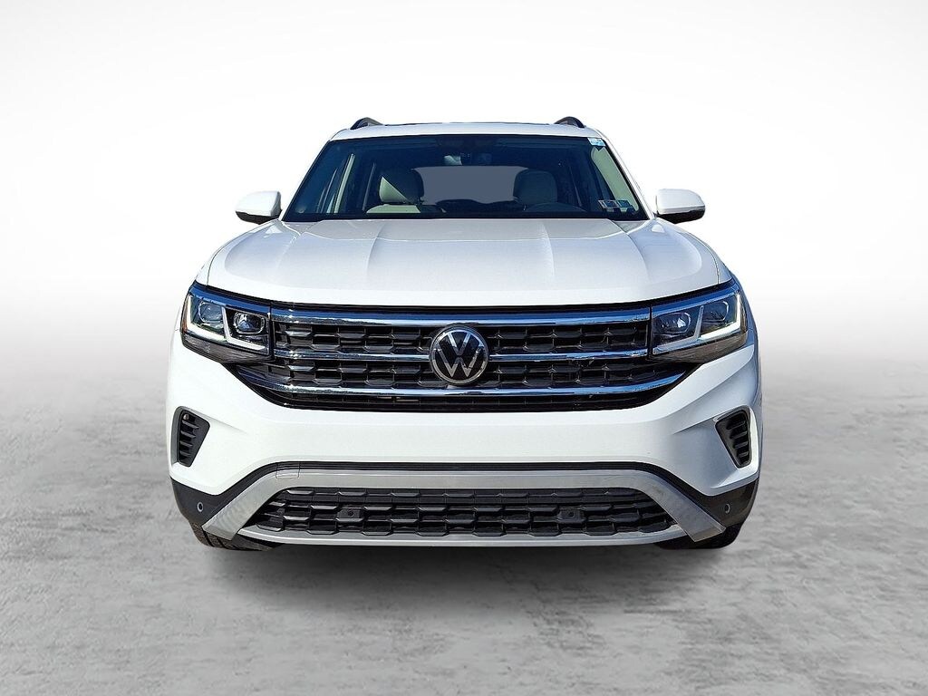 CARFAX One-Owner. Clean CARFAX. Pure White 2022 Volkswagen Atlas 3.6L V6 SE w/Technology AWD 8-Speed Automatic with Tiptronic 3.6L VR6 2nd-Row Dual Captain's Chairs, Alloy wheels, Power Tilting & Sliding Panoramic Sunroof, Trailer Hitch Delete, Wheels: 21" 2-Tone Machined Alloy.